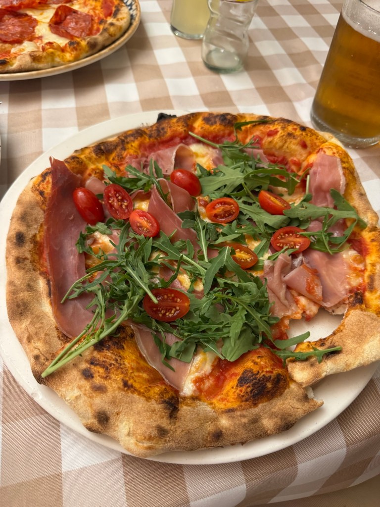 The pizza? Solid. Not spectacular. The base had integrity — chewy, properly baked, none of that flaccid Deliveroo business. The toppings were plentiful if uninspired. It’s the kind of pizza that gets the job done. You’re not talking about it three days later, but you’re glad it was there when you needed it. Like Imodium.