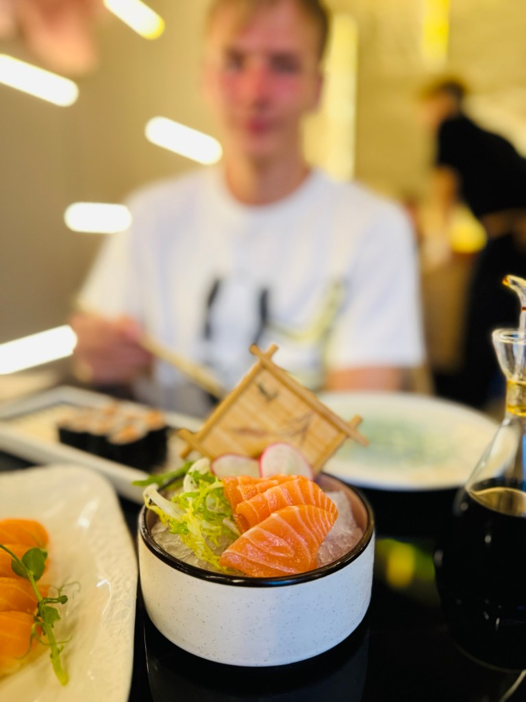 For an adult in the evening, it’s €26. Twenty-six euros for unlimited sushi, tempura, gyoza, yakitori, edamame, and those slightly off-putting but always moreish seaweed salads that taste like kelp and disappointment. If you eat more than five plates—which, unless you’re a hedgehog or a supermodel with jaw wiring, you will—you’re officially winning. And reader, I won.